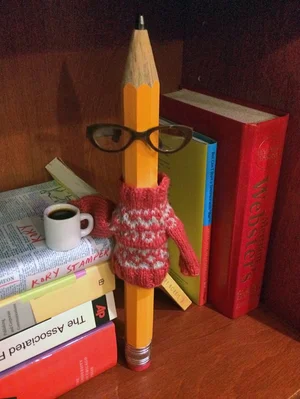 I was having fun, but then I found out I needed glasses last summer when I started having trouble crossing my t’s and dotting my i’s. I was sure that would end my days of going to events because my glasses would get in the way of people writing with me, but it turns out editors and writers love pencils that wear glasses! I was promoted to Guild mascot after that. My cousins without glasses still go to some Guild events and let visitors write with them, but they’re happy about my role as mascot—there’s no hard-graphite feelings there.