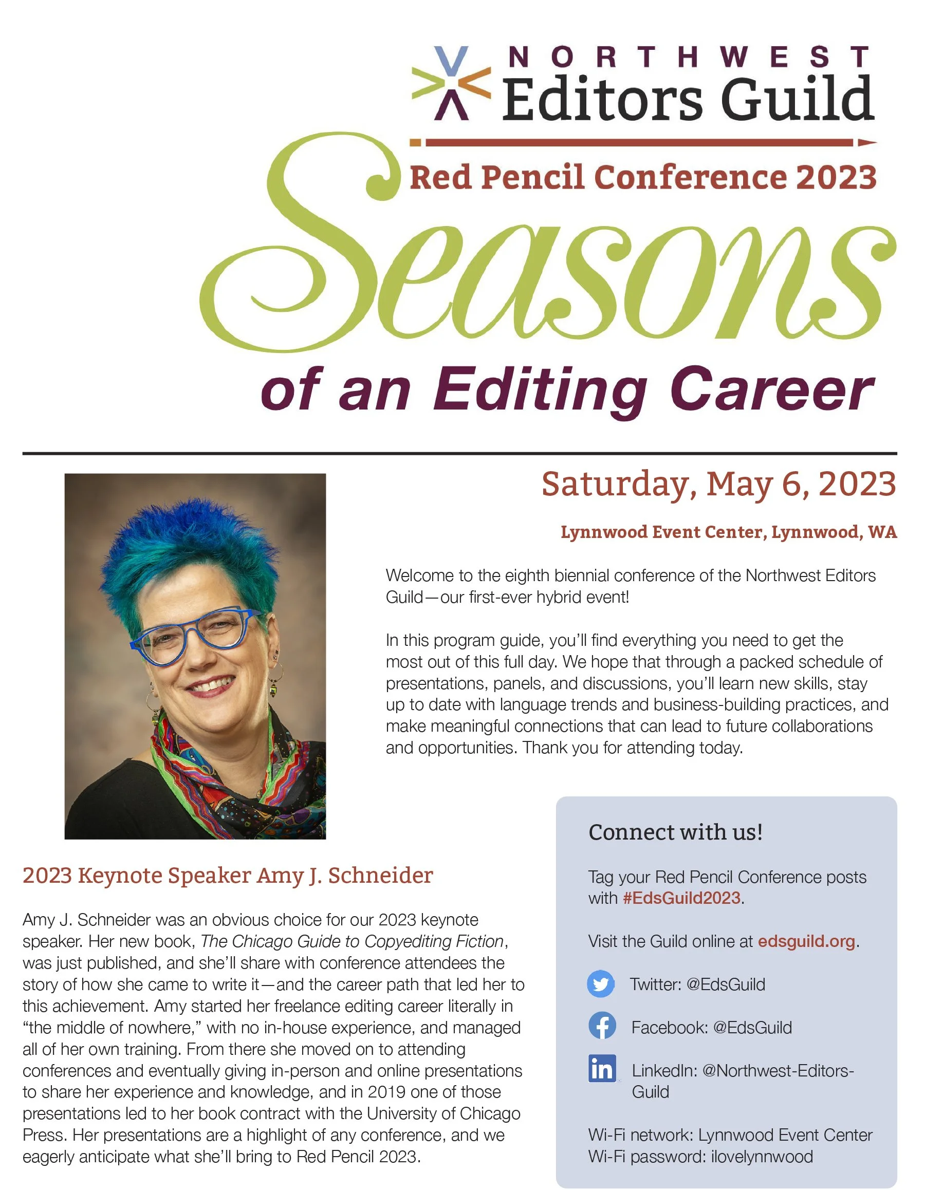 Saturday, May 6, 2023 | Lynnwood Event Center | Lynnwood, WA Red Pencil 2023 ProgramClick the image below to download the full PDF of the conference program. ContactPlease send questions to: conference@edsguild.org< Return to main Red Pencil 2023 page.